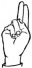 На ћирилици написано МАЈА ДАНГИЋ састоји се из 10 слова [?]. Исписано ћириличном једноручном азбуком за глувонеме: